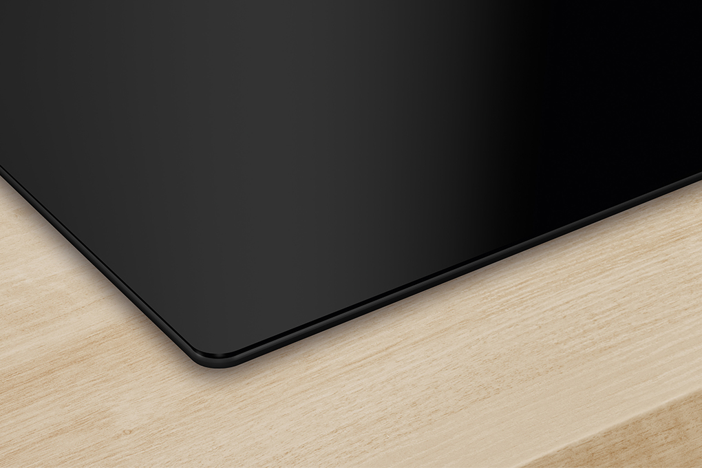 - Mặt bếp làm từ chất liệu kính Ceramic - Schott Ceran (Đức) sáng bóng, chịu nhiệt cao, sử dụng bền bỉ, đồng thời dễ vệ sinh lau chùi.