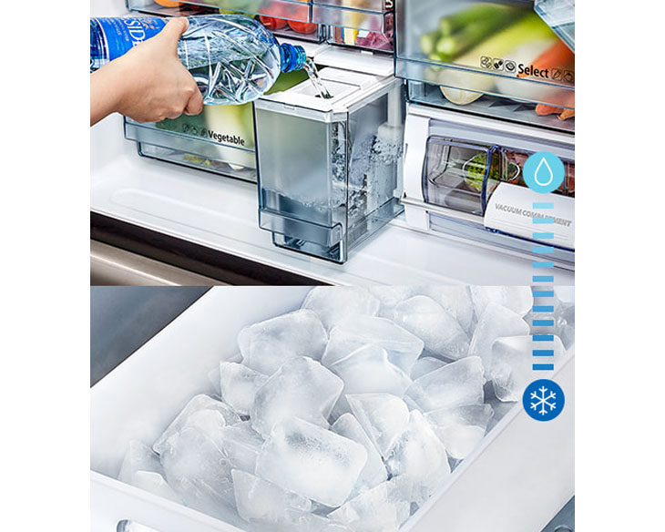 - Làm đá tự động: Tiết kiệm thời gian làm đá theo cách truyền thống, thích hợp cho những gia đình thường xuyên thưởng thức các đồ uống lạnh.